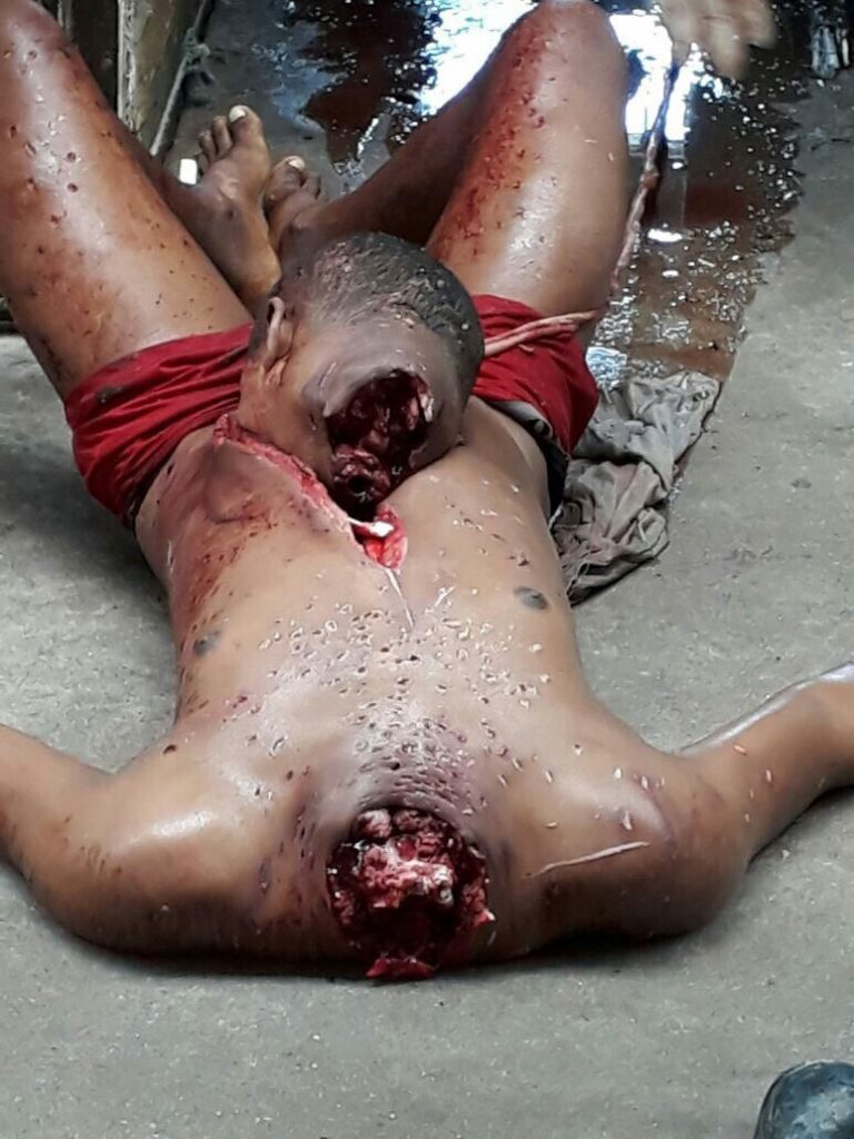 gif_animation ブラジル・アラゴアス州の刑務所で、19歳の少年囚人が、ナイフで体を数十回刺され、首を切断され、お腹を割られ、頭を ”その中” に入れられるという余りにも衝撃的な姿で発見された。おそらくは刑務所内の暴動に巻き込まれたと思われる。[2]img