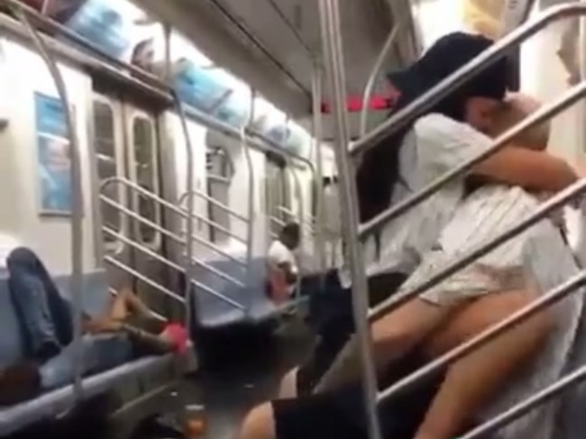 gif_animation 米ニューヨーク州にて、地下鉄の電車内でAVみたいなセックスをしてるバカップルの2人が、モザイクなしでネット上に晒されていた動画。これは凄い。