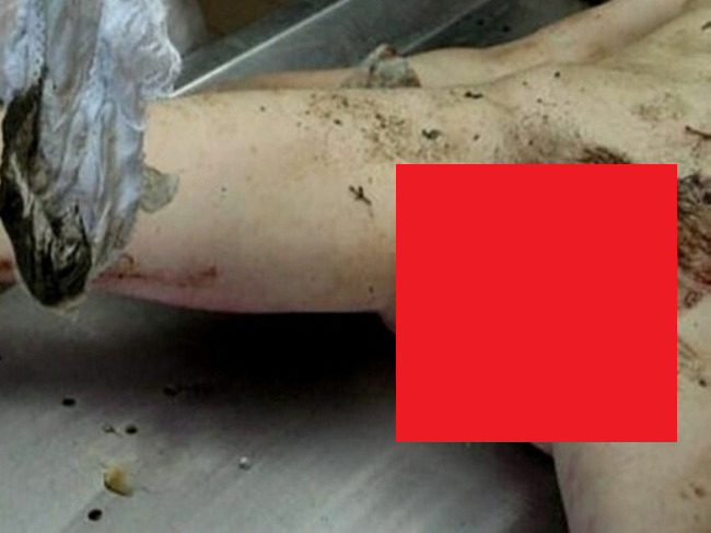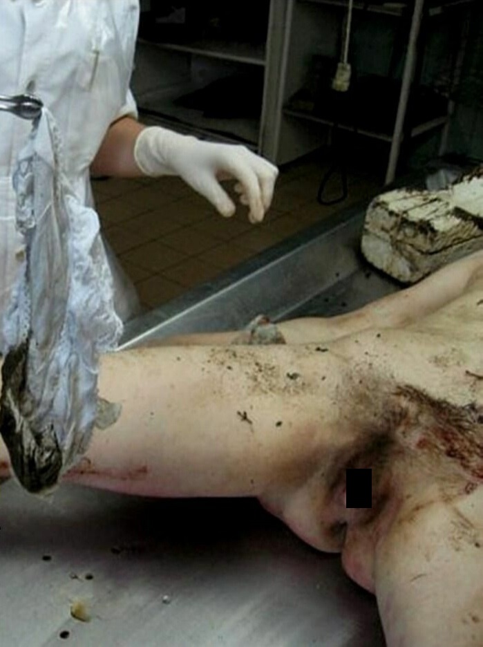 gif_animation 古い画像。レイプされ、殺害された女性の ”膣の中” から、女性が履いていたと思われるパンティーが発見された検死の様子。それは凌辱の一部であった。[4]img