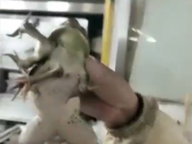 中国の激安レストランで使われてる「カエル」が、あまりにも奇形すぎた動画。その手足は、全部で7本あった・・・。