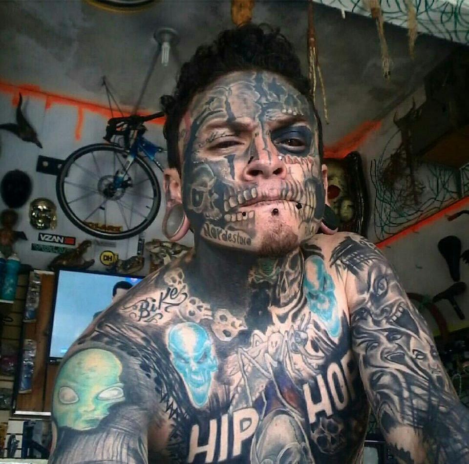 【画像】ヤンキー(18歳)が目立ちたくて全身にタトゥー入れまくった結果・・・これはアウト