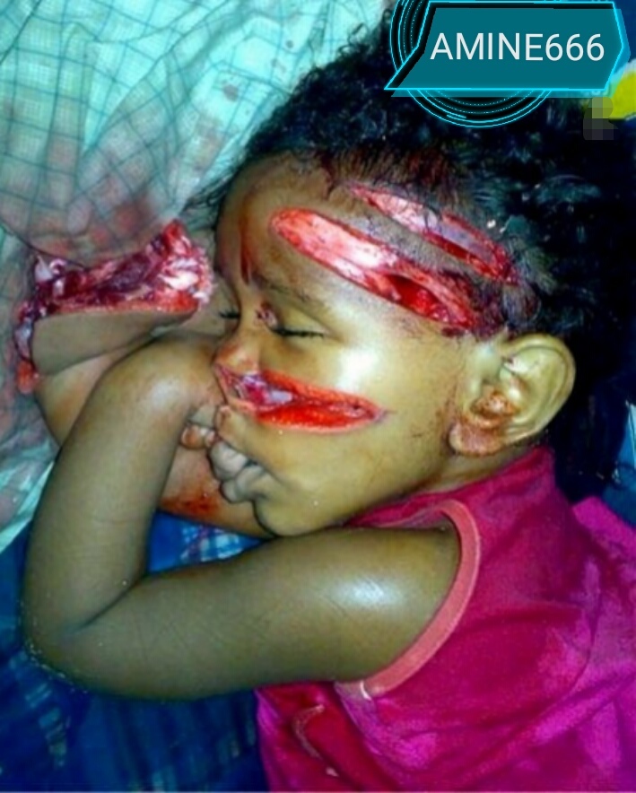 gif_animation 国・詳細は不明。小学生の女の子がお父さんに ”やられた事” 。何があったのかは分からないが、父親は娘をマチェーテ(なた)でズタズタにした…。[4]images