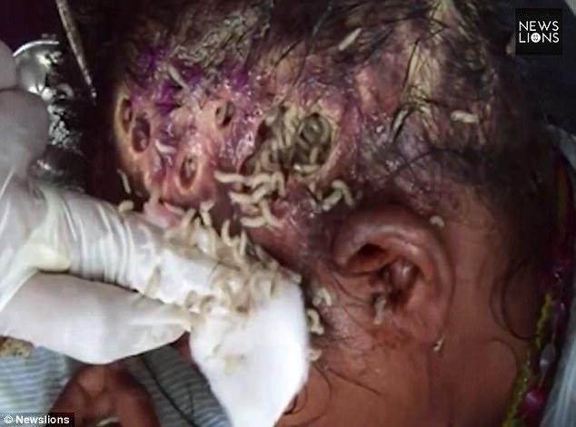 gif_animation インドより、とある女性ホームレスの姿。彼女の髪はもはやカツラのようになっており、それを ”脱いで”(一部散髪)もらうと、そこには無数の穴が。その中にはたくさんの生き物たち(うじ虫)が住んでいた・・・という衝撃画像。[7]images