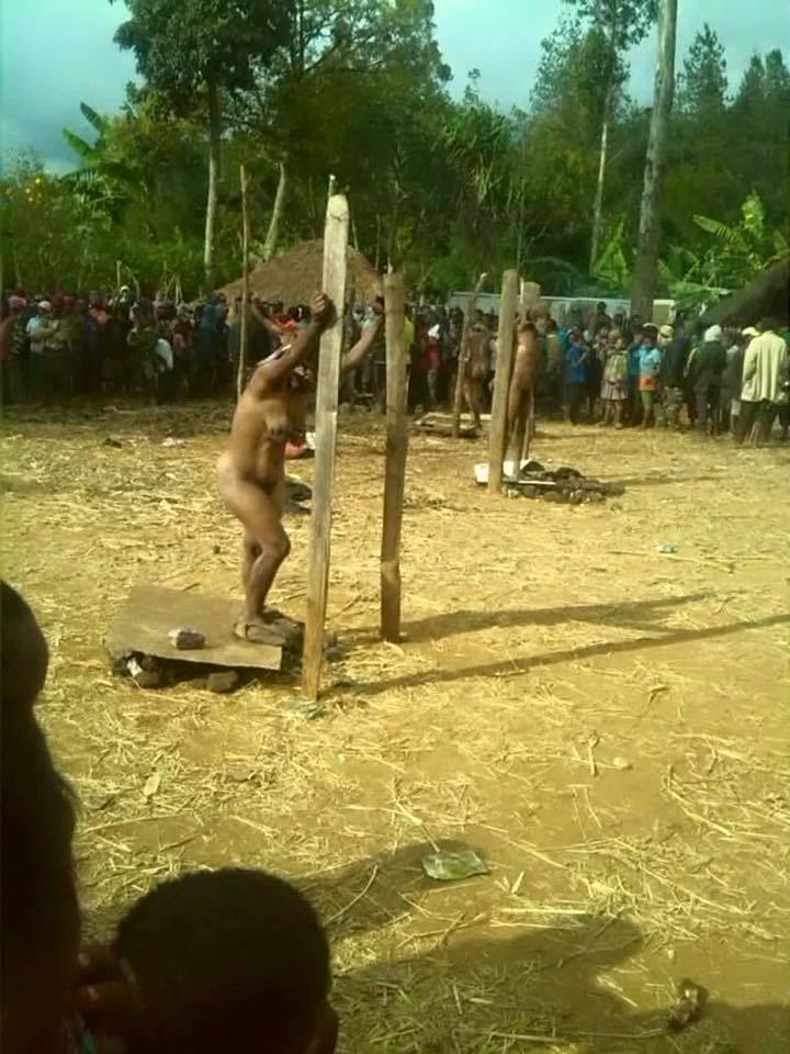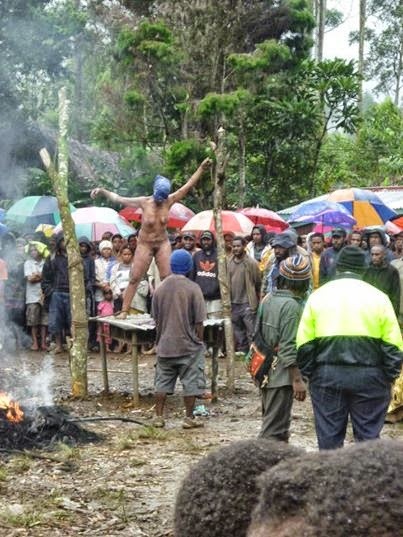 gif_animation 魔女の疑いをかけられた女が拘束され、村人たちから私刑(ほとんどが生きたまま燃やされる)を受けるという風習、 ”魔女狩り” 。16世紀~17世紀頃がピークであったが、「パプア・ニューギニア」などの一部地域では、未だにこの風習が残っている場所があるという。画像はそんなパプア・ニューギニアから、”魔女狩り” の様子。