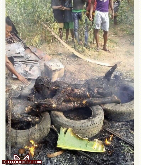 gif_animation 2018年1月3日、ナイジェリア、アクワ・イボム州にて、男性から金品を奪った強盗2人が、「タイヤネックレス」(タイヤを首に掛け燃やす私刑・拷問方法)により殺害された。(ただし厳密にいうとそれは失敗だった)[7]images