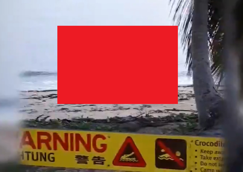 gif_animation オーストラリアにて、早朝、とある人物が遊泳禁止のビーチに漂着した巨大魚の死骸を撮影してたら…海の中から、”それ” は現れた…。(※ TOP画 看板にヒントが)