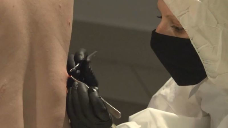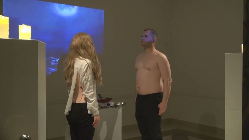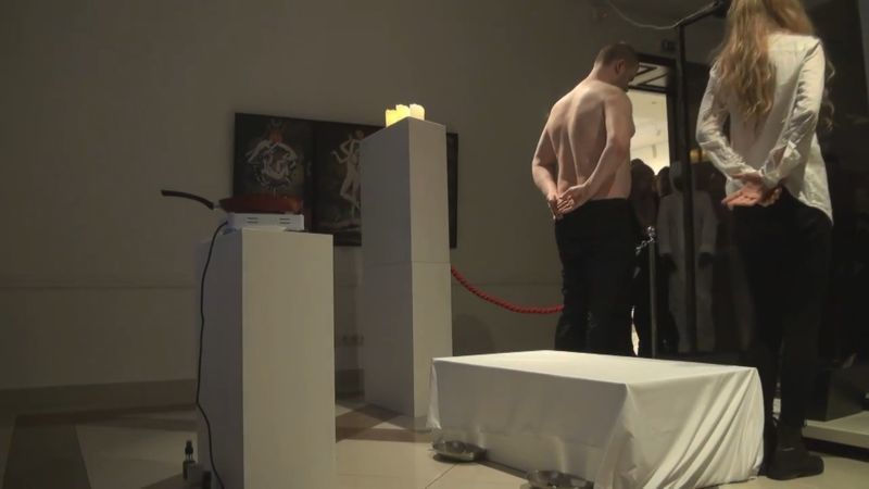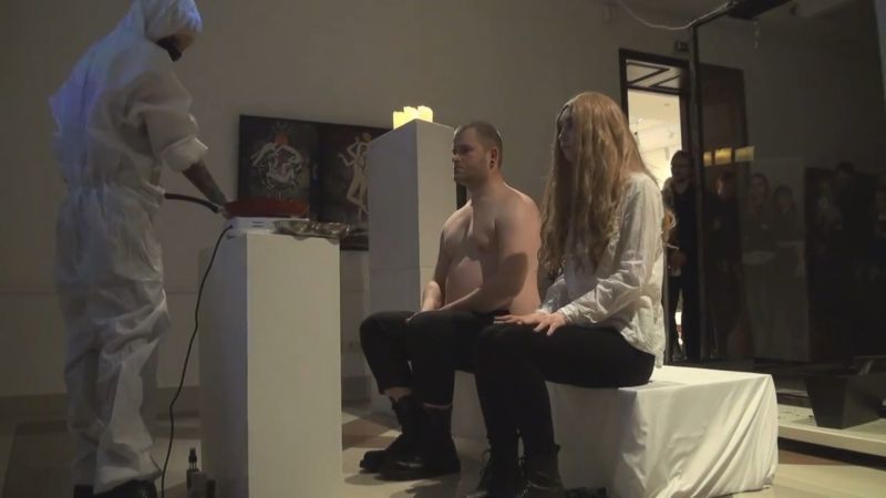 【閲覧注意】モデル2人の背中の肉を切って自分たちに食べさせる ⇒ 現代アートです!オシャレでしょ?