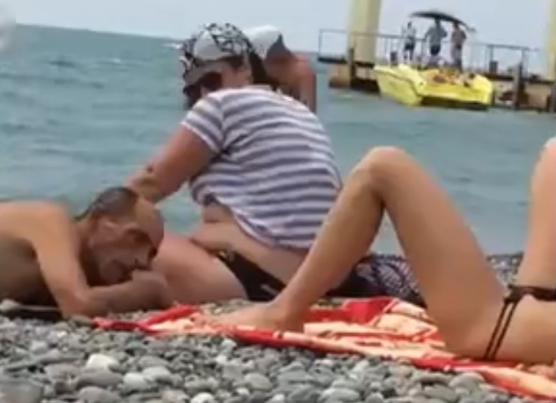 gif_animation ロシアの海水浴場で、水着姿の女の子が股を開いて寝てた時の夫婦の行動が話題になっている動画。ぶよぶよの妻に寄り添いながら、女の子の股間を凝視し続ける夫。