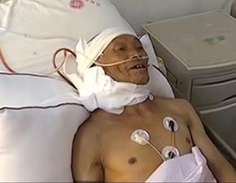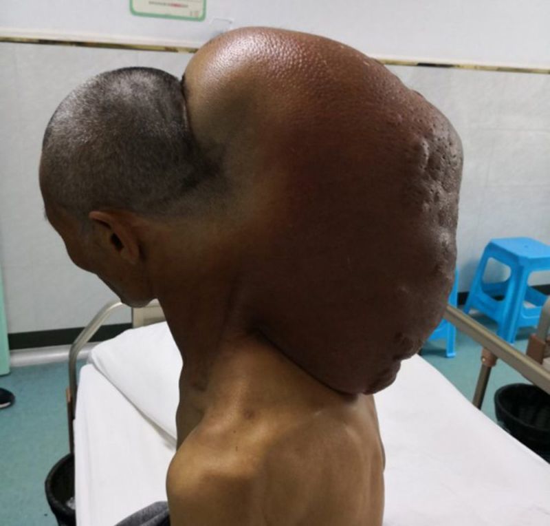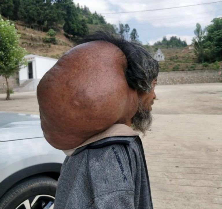 gif_animation これ、人間の写真らしい・・・。中国にて、17歳の頃から47年間、首に出来た腫瘍が成長し続け、15kgもの重さに達してしまった64歳男性の姿。家が貧しかったため治療を行う事が出来なかったが、最近お金が貯まったため、手術に踏み切ったよう。