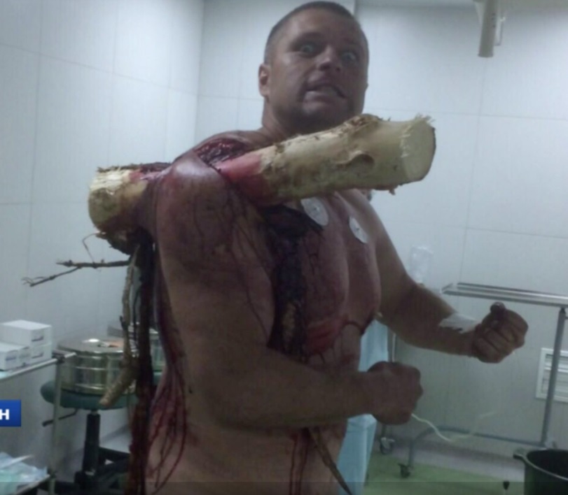 gif_animation 陽キャ(陽気なキャラクター)は ”事故で太い木の枝が肩に突き刺さっても” 陽キャらしい…。ベラルーシで話題になっている陽キャ画像。[5]images