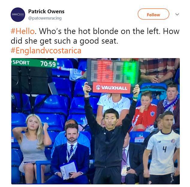 6月7日に行われたサッカー代表戦、「イングランド」vs.「コスタリカ」の試合で、TVカメラに映った ”おっぱいが大きすぎる” 美女は一体誰だったんだと話題になっているよう。ちなみにその正体は、