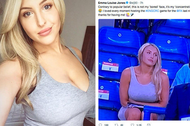 したイングランドの美人リポーター、”Emma Louise Jones” さんだったよう。やはり目立ちすぎるその巨乳…。