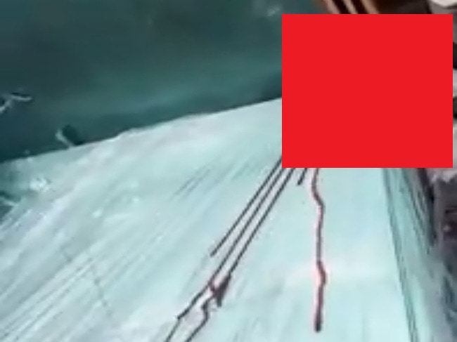 gif_animation インドにて、重さおよそ1トンの巨大なガラスに潰された作業員の姿が怖すぎた動画。首を完全に潰され、血が吹き出し、すでに死亡している模様。