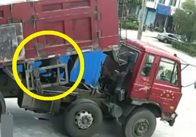 トラックの荷台を持ち上げ、その間で作業していた男性が、突然落ちてきた荷台に挟まれ一瞬で圧死する様子。これは怖い…。(荷台が落ちてくる瞬間は0:42~)