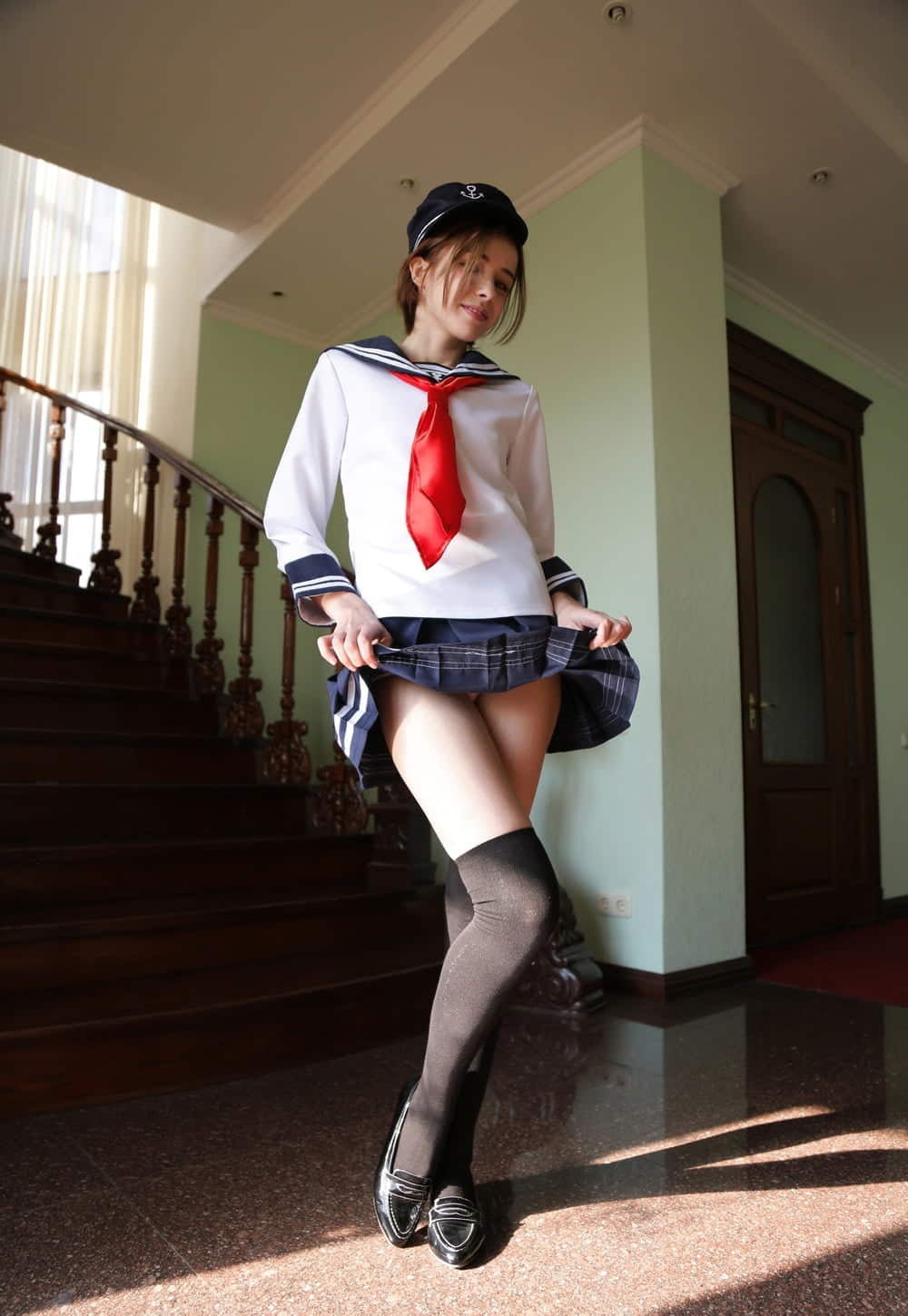 【画像】海外の美少女が ”エロ目的” で日本のJKセーラー服着た結果wwwwww