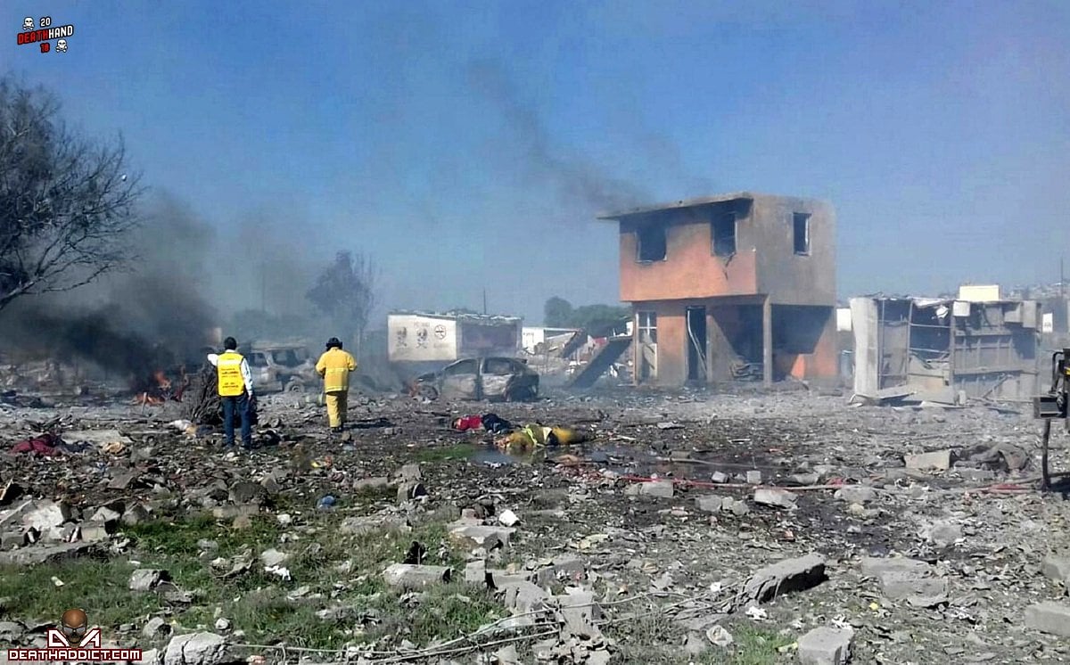 今月5日、メキシコ中部トゥルテペックで花火工場が大爆発を起こし、24人が死亡、49人が負傷したとの事。画像は大爆発を起こした現場、及び2016年、同じトゥルテペックで起きた花火工場の大爆発、死者たちを撮影したもの。[15]images