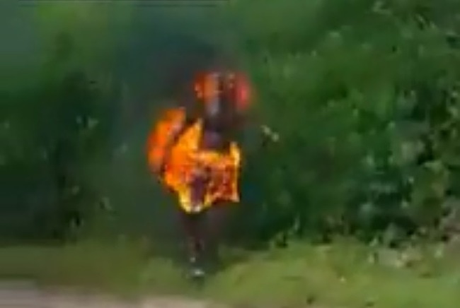 女性が泣き叫びながら燃え盛る男を撮影している衝撃動画
