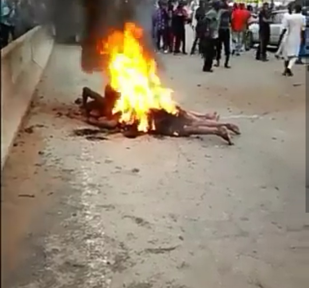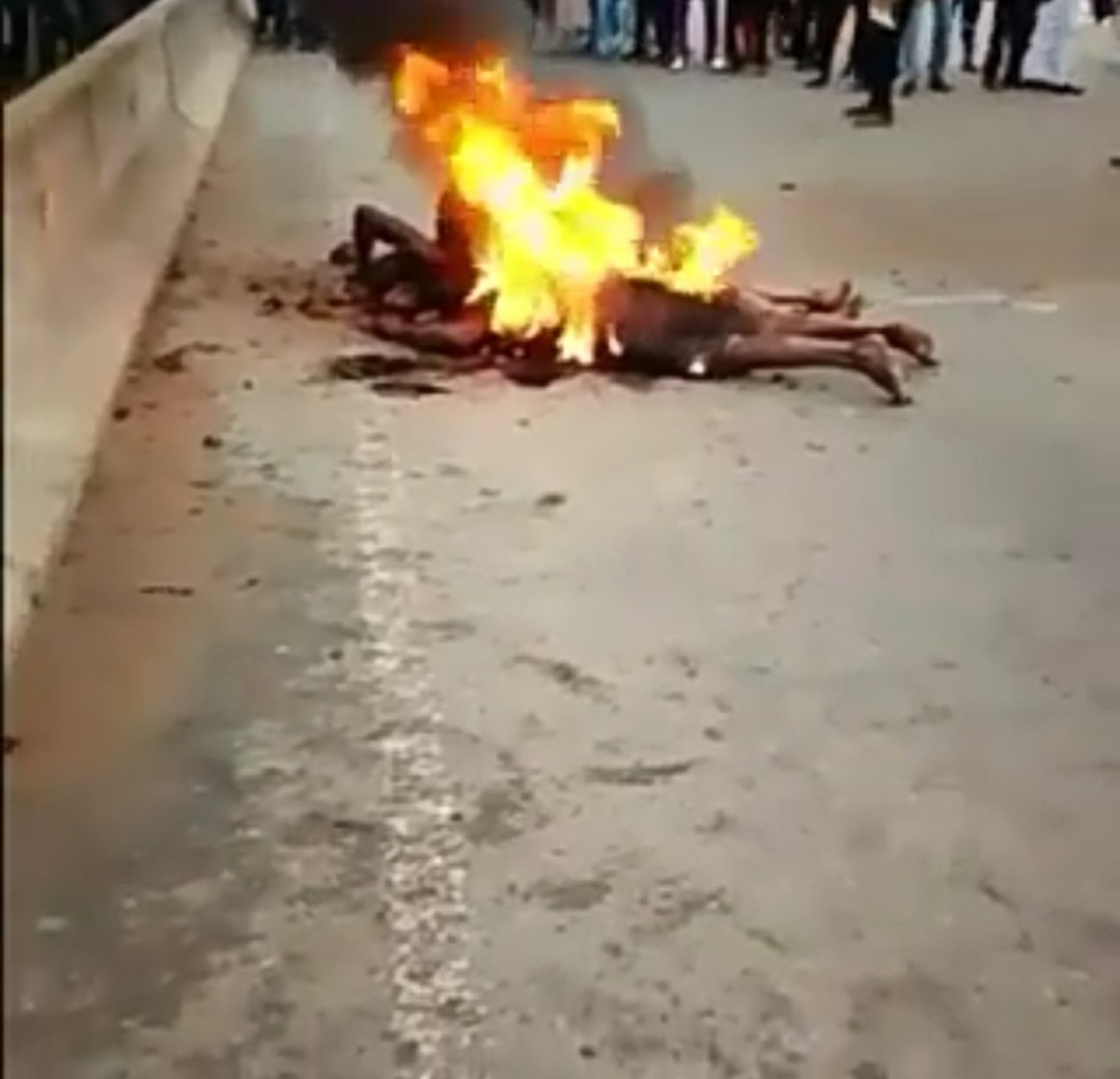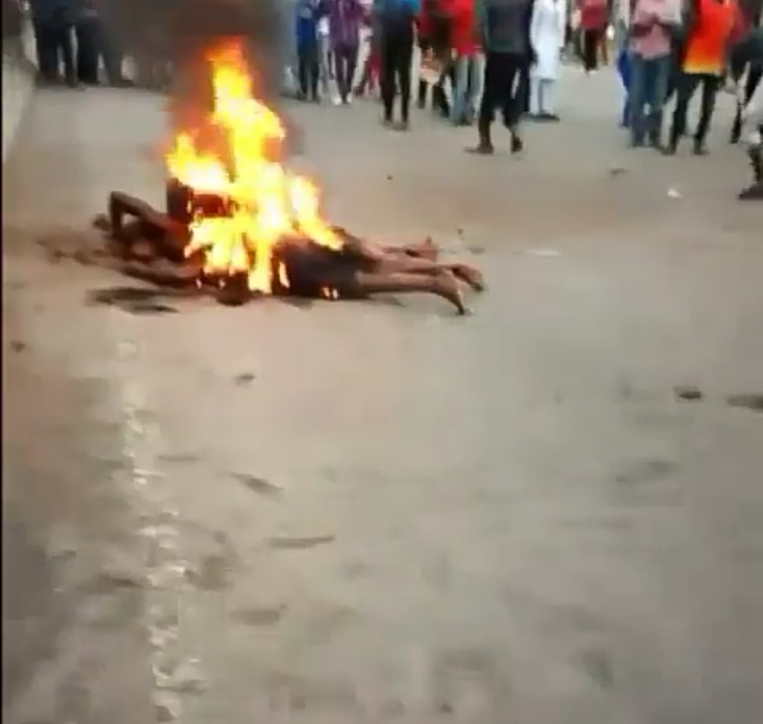 gif_animation ナイジェリアの首都アブジャにて、女児誘拐犯(※ 詳細は不明)の男2人が、怒り狂った民衆たちに襲われ、暴行→焼殺されたというニュース。現場画像。[6]img