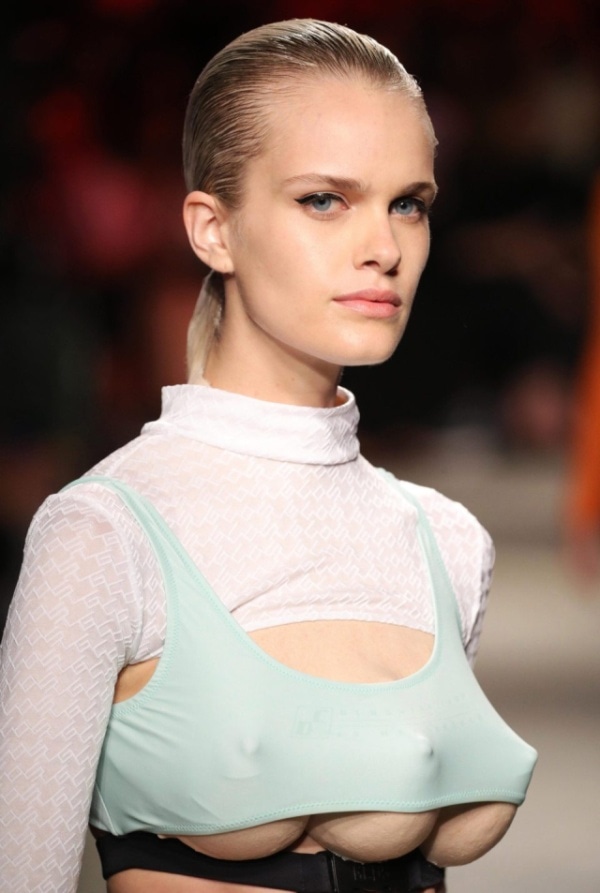 イタリア・ミラノで開かれた美人モデル達によるファッションショーで、「とんでもないおっぱい」の女が登場し話題になっています。クレイジーすぎるデザイナーによる、”人類の進化” をテーマにしたファッション…。怖い…。[7]images