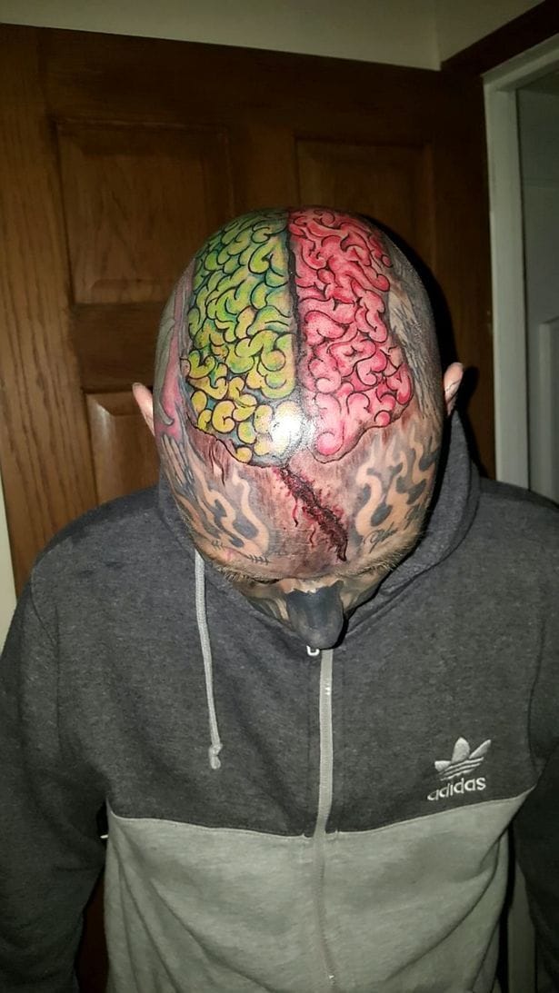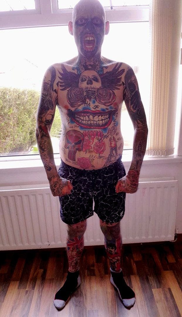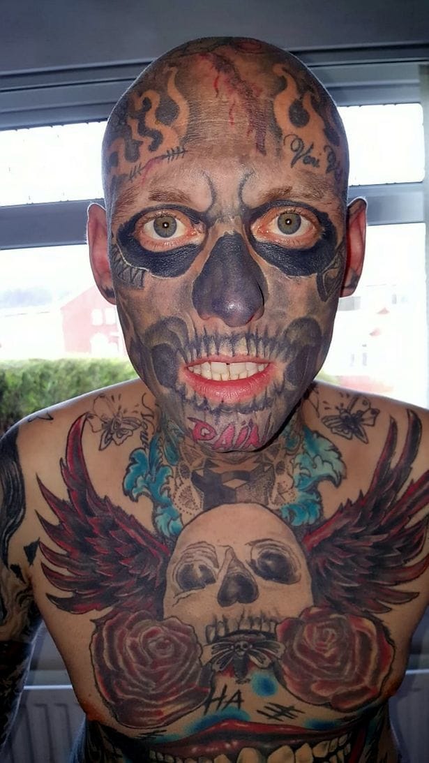 gif_animation アイルランドにて、16歳の頃からおよそ400万円を掛け、体の600か所にタトゥーを入れた30歳の男性(既婚・子持ち)が話題になっていました。怖い…。12枚。
