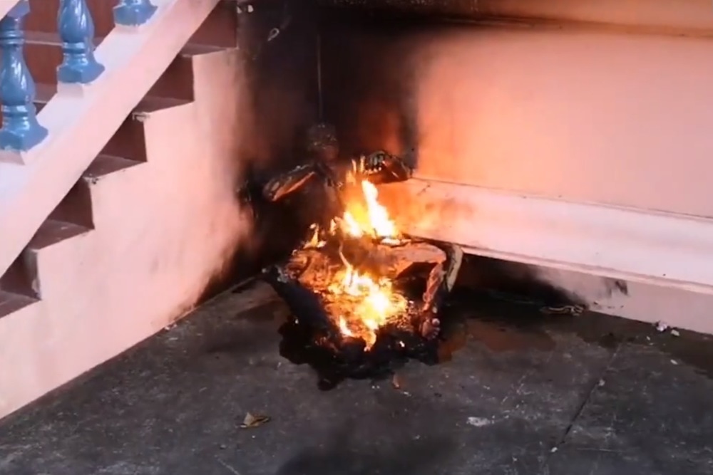 ≪MOVIE≫ Crazed Man Sets Himself On Fire In Buddhist Temple