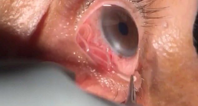 東南アジアにて、男性の目の中で「15cm」もの大きさに成長した寄生虫の画像+除去動画。目の痒みや痛みを訴え病院を訪れた事で判明、感染経路は不明だそう。