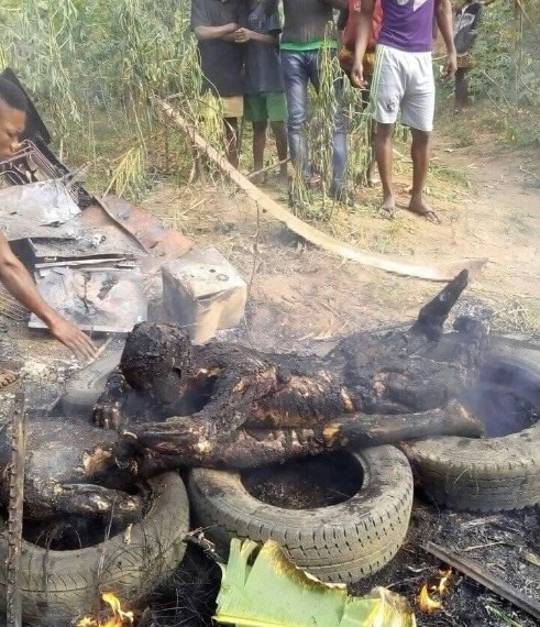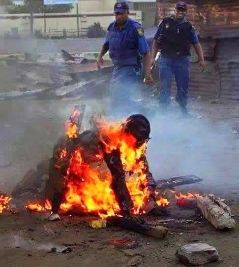 アフリカにて、2日前(11月8日)に発生した強盗事件。捕まった4人の内、逃げようとした1人が民衆らに伝説の私刑 ”タイヤネックレス” を実行された際の画像1枚。関連で過去の ”タイヤネックレス” 画像まとめ。かなり【閲覧注意】。[7]images