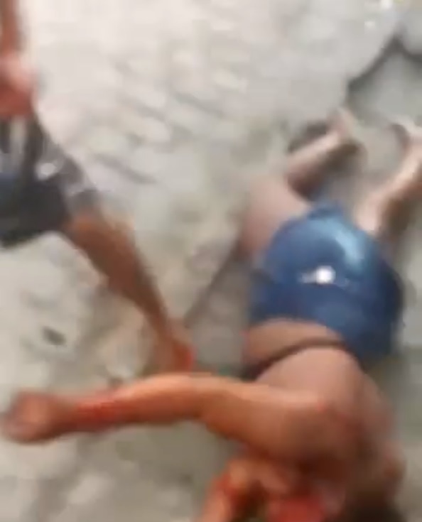 ブラジルにて、ギャングに囲まれた、(情報によると)麻薬関係でトラブった女。おっぱい丸出し状態で、今から何をされるか。”本編” 0:38~。音量注意。
