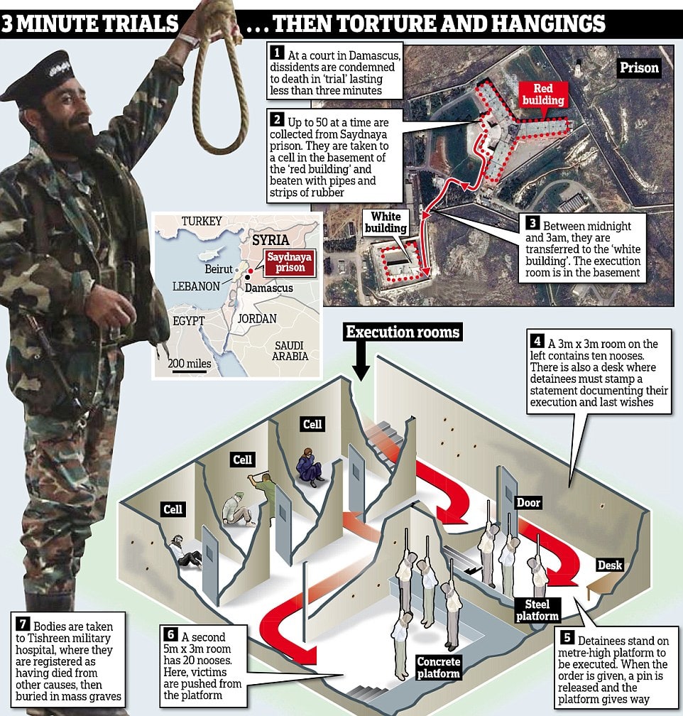 今、ギャングで溢れ返る「ブラジルの刑務所」よりもヤバいとされる ”シリアの刑務所” 。そこにいる囚人はほとんどがシリア政府に敵対する民間人で、週に2~3人が死刑(絞首刑)され、レイプ、拷問などの凌辱が日々行われているそう。囚人達の動画像。