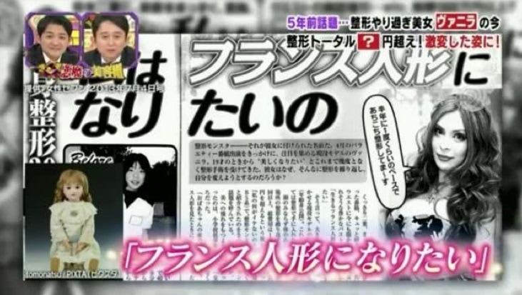 中国サイトにて、5年前 ”整形モンスター” と話題になった日本人女性、「ヴァニラ(年齢不詳)」の最新画像が紹介され、「怖すぎる」、「もはや中毒だ」などと話題になっていました。日本の番組内で紹介されたもの。動画+[11]images
