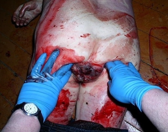 gif_animation 顔の原型が分からなくなるほど暴行され、大勢の男たちに輪姦されたレイプ被害者。肛門に ”ほうき” を突っ込まれるなど、恐ろしい事になった性器部分がこちら…。