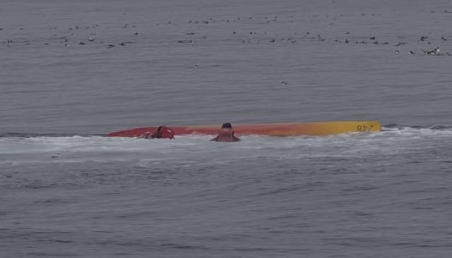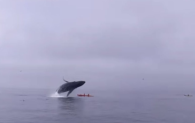 gif_animation 米カリフォルニアにて、ホエールウォッチングが出来るカヤックツアーに参加したイギリス人観光客のカップルが、クジラ(推定30t)のダイブの真下にいた結果・・・。GIF+画像(画像の最後に観光客カップルがどうなったかの情報)。[7]images