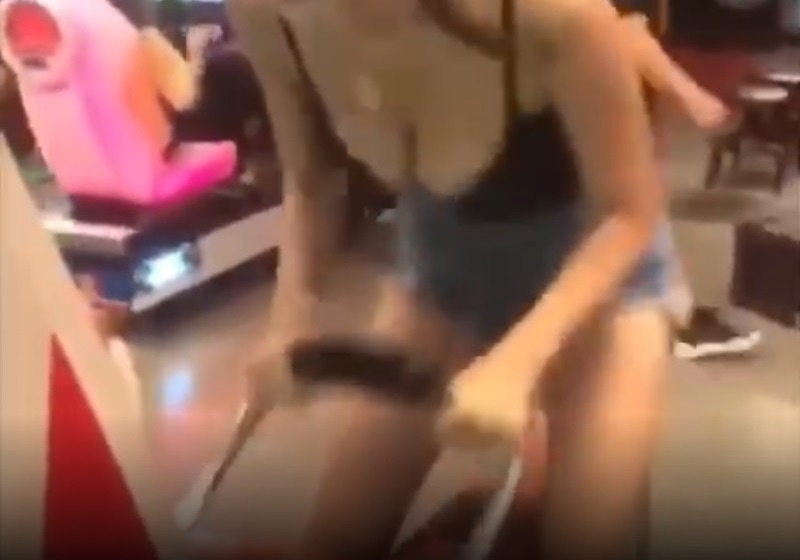 シンプル動画。ゲーセンにめちゃくちゃエロい女の子がいた…。ロデオマシンのようなゲームで、おっぱいをぶるんぶるん揺らしている女の子がエロいと話題に。