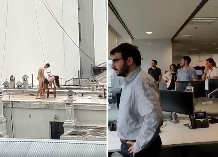 海外にて、昼間真面目に働くサラリーマンたちが、近くのマンションの屋上でセックスしてるカップルを見つけ大盛り上がり。世界中に晒してしまった動画・・・。