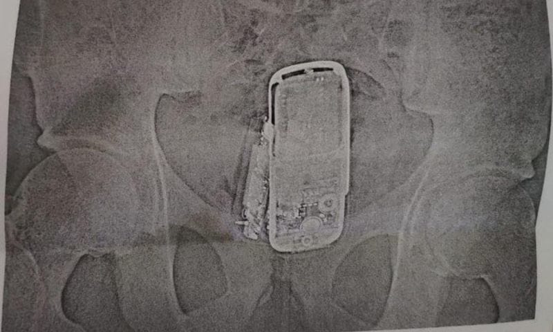 ロシアにて、刑務所に面会にやって来た18歳の少年を不審に思った看守が少年を調べると、お尻の辺りから金属探知機の反応が…。その後肛門の中から、3つの携帯電話、バッテリー、充電ケーブルなどが発見されたとの事。面会相手であった兄にこっそりと渡すつもりだったようだ。X線写真など。(※ TOP画はイメージ)[2]images