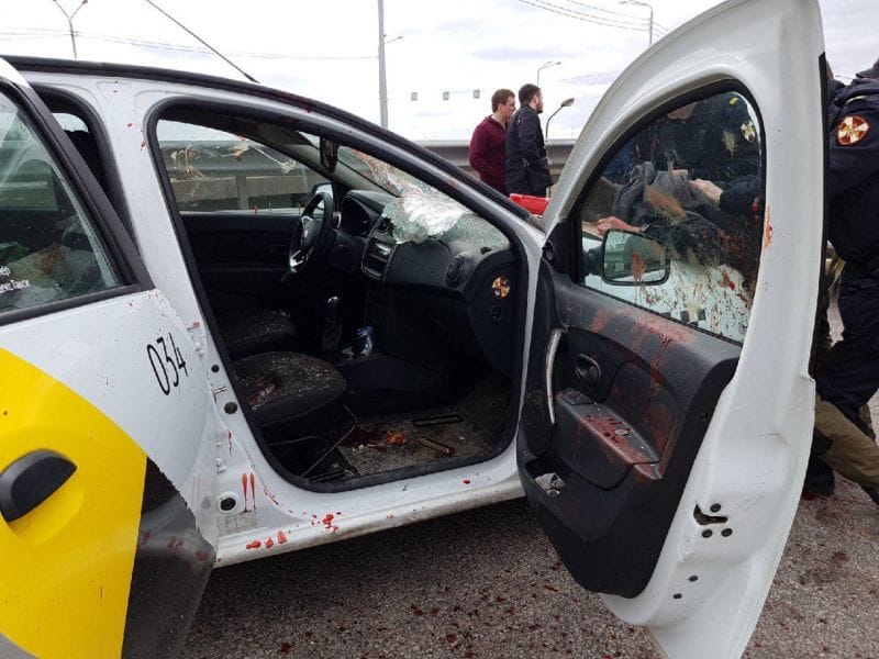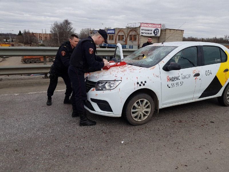 gif_animation ロシア・ヤロスラブリにて、タクシーの運転手と口論になり、持っていたナイフで運転手を攻撃。その後運転手がタクシーの中に立てこもると、”フロントガラスに頭突きしながら” 中に入ろうとしていたDQN客が警察に逮捕されたとの事。現場画像。