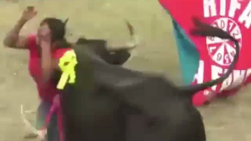 gif_animation 海外で行われた闘牛で、調子に乗って「赤い服」を着て牛を挑発した女性はこうなる動画。少なくとも重傷を負ったことは間違いないが、死亡したという情報も…。
