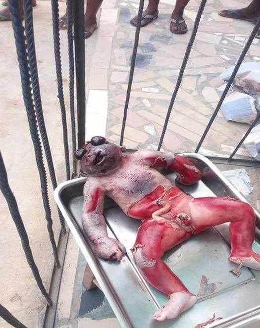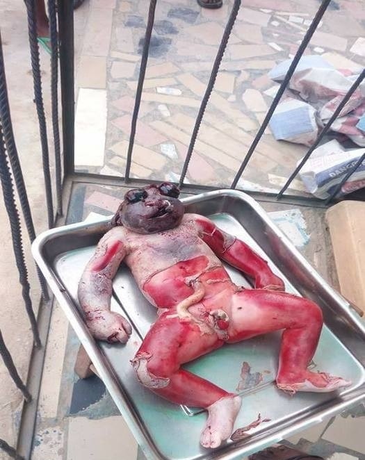 gif_animation ナイジェリア・アビア州の病院で産まれ、病院中、そして街中がパニックになったという赤ちゃんの姿。間違いなく何らかの奇形を発症しており、その後死亡した。