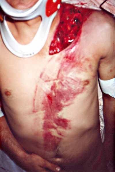 【閲覧注意】シートベルト、命は助けたものの、肩は切り裂く(画像あり)