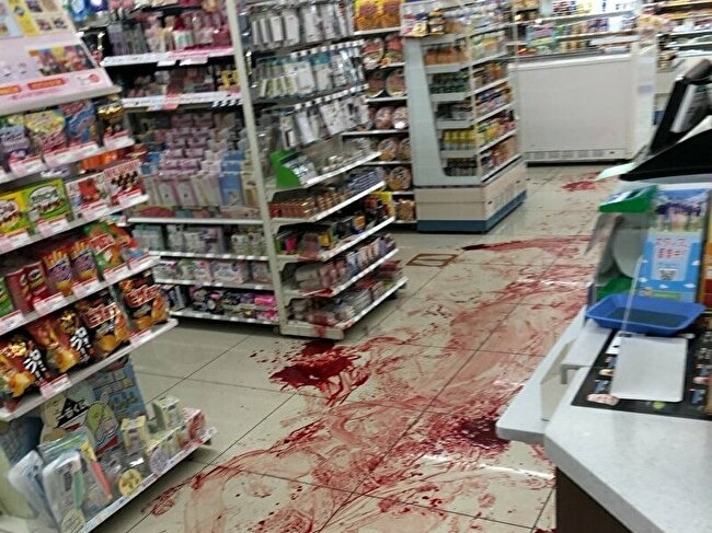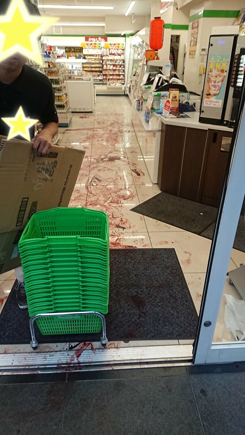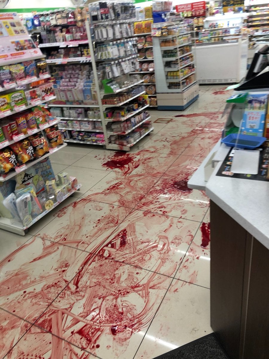 gif_animation Twitterからの情報。昨夜、東京・立川市のファミリーマートで殺人事件が発生したとの事。流出した画像にはおびただしい量の血痕が…。これは死ぬわ…。[5]img