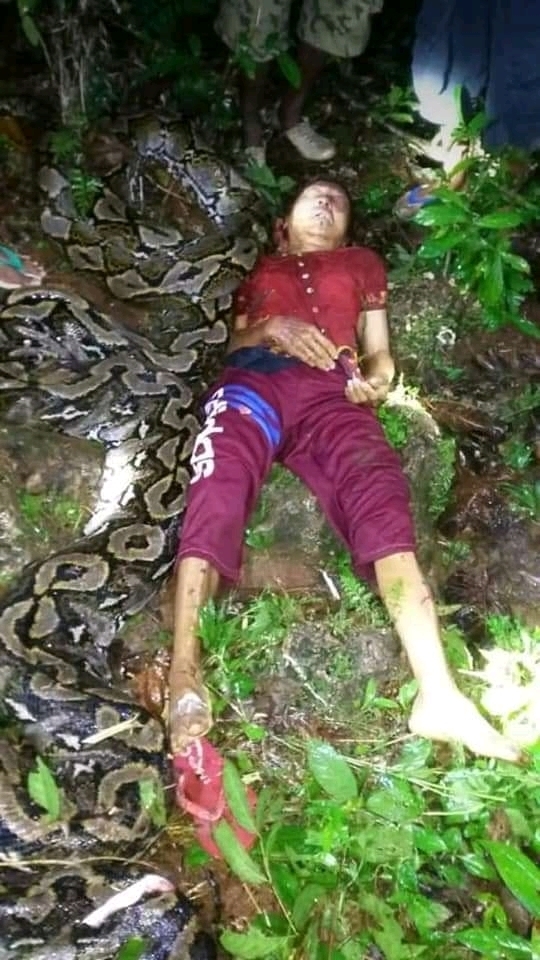 【閲覧注意】インドネシアで7mの超巨大ニシキヘビに女性が殺される。画像がこちら