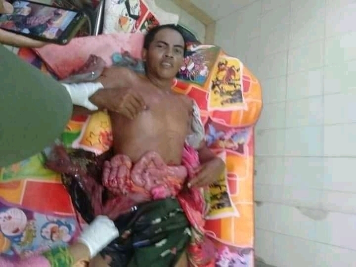 gif_animation 東南アジアにて、詳細は不明ですが、”このおじさん” とケンカした若者の姿がやばかった画像。凶器は鎌のような形をした刃物。クレイジーすぎる・・・。[4]img