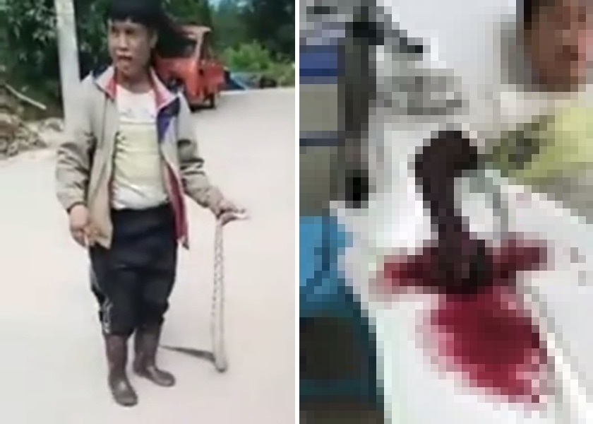gif_animation 中国にて、猛毒の蛇を捕まえ遊んでいたバカな男性が、その後恐ろしい姿となるビフォーアフター動画。以前紹介した「コブラおじさん」を思い出す衝撃的な光景。