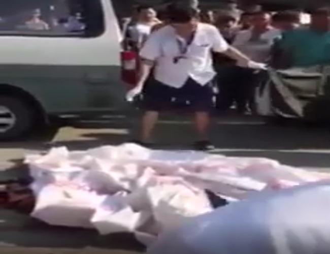 gif_animation 今からこのシートがめくられる…。中国にて、32階建て、高さ100m~のマンション屋上から人が飛び降りる瞬間の動画+その地上現場で、その人物がどうなったか。