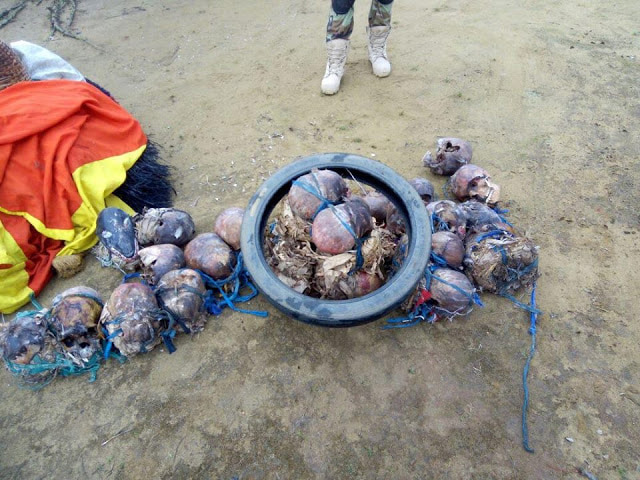 gif_animation ナイジェリアにて、アフリカで未だ信じられている ”黒魔術” の、儀式のための生贄として本物の人間の頭蓋骨が使われていた事が判明、関係者らが逮捕されたというニュース。画像は発見された人間の頭蓋骨、その数はなんと ”25” もあったという…。