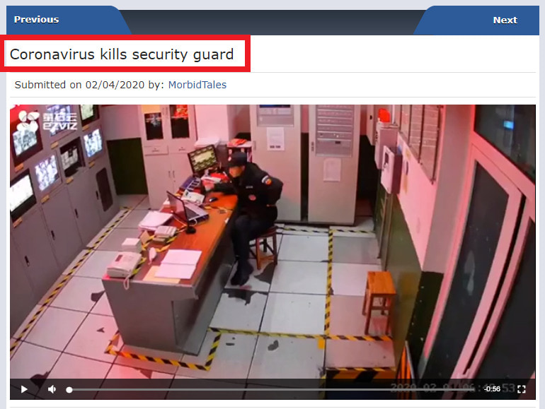 gif_animation 中国にて、最新(2/1)の、コロナウイルス感染者の「死の瞬間」とされる動画が流出、怖すぎると話題になっています。監視カメラが記録した、感染後期の警備員…。