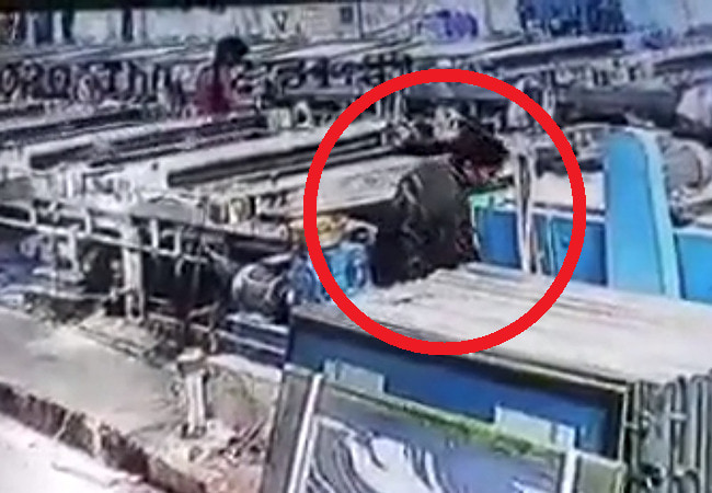 gif_animation インドの工場で、作業員の男性が機械に巻き込まれ、ゆっくりと300度(ほぼ1回転)に折り曲げられ死亡する事故。【閲覧注意】ではないですが、かなりの衝撃事故。