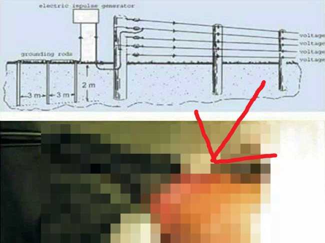 gif_animation ”電気柵” に立ちションしたらチンチンはこうなる・・・シンプルな1枚。絶対にやってはいけない。 関連で「10000ボルトの電流が流れ続けた人間」。