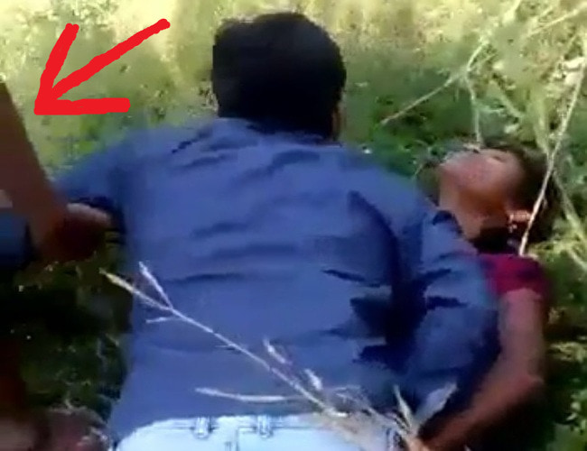 インドにて。このレイプされてる女の子を助けようとしてる男(緑の服)が、女の子の彼氏らしい…。おそらくは外でセックスしてたのを自警団に見つかりこうなった。