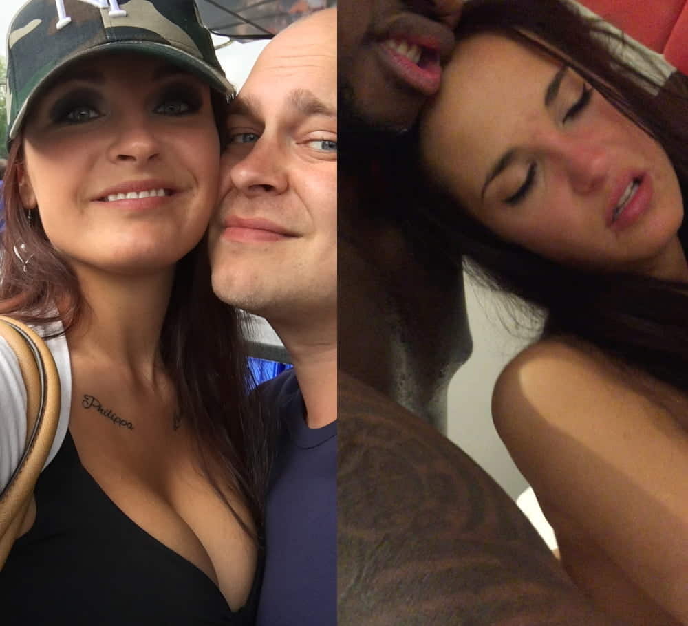 同じ女の「結婚式の画像」と「黒人と浮気セ○クスしてる画像」が並べられるwwww
